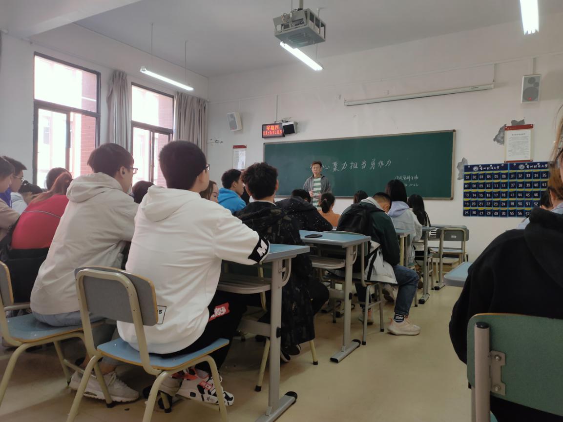 为响应校团委的号召,学习学习中国共产党yl23455永利集团第二次代表大会会议文件(公司第二次党代会精神),深入贯彻习近平新时代中国特色社会主义思想,2019级yl23455永利四班团支部于2020年10月22在博学楼1-8开展“凝心聚力前行勇担当”主题团日活动。此次主题团日活动由周道主持,全班参与。