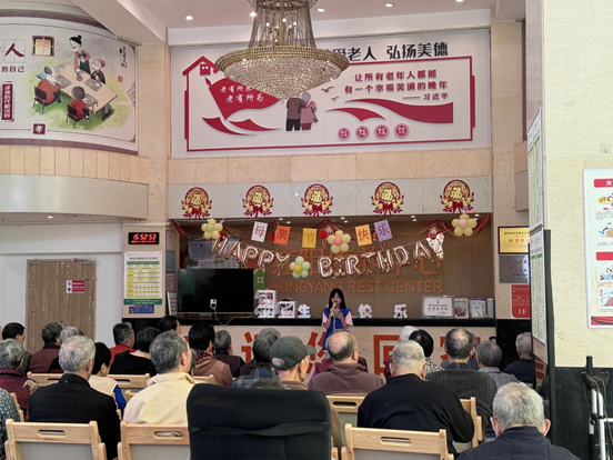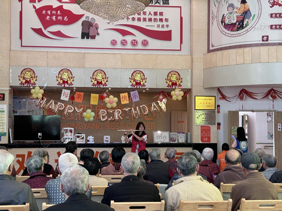 活动特别设置集体庆生环节,志愿者与全体长者共同为三位五月寿星庆贺生辰。烛光摇曳映照着寿星的笑靥,青年学子们为长者戴上缀满祝福的寿星帽,送上手写贺卡,将切分好的蛋糕送至每位老人手中。活动结束后,志愿者们细心搀扶行动不便的长者返回居室,并协助工作人员整理活动现场。