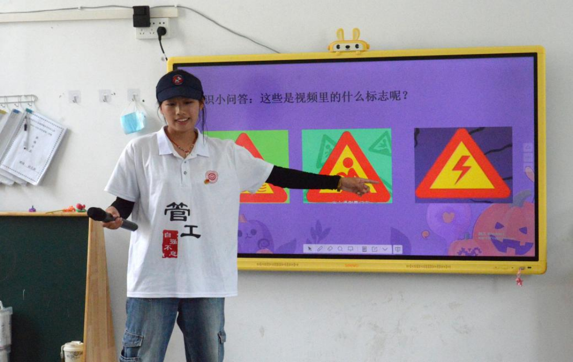 活动现场,队员们采用问答互动、儿歌传唱等孩子们喜爱的方式为他们普及相关安全知识。