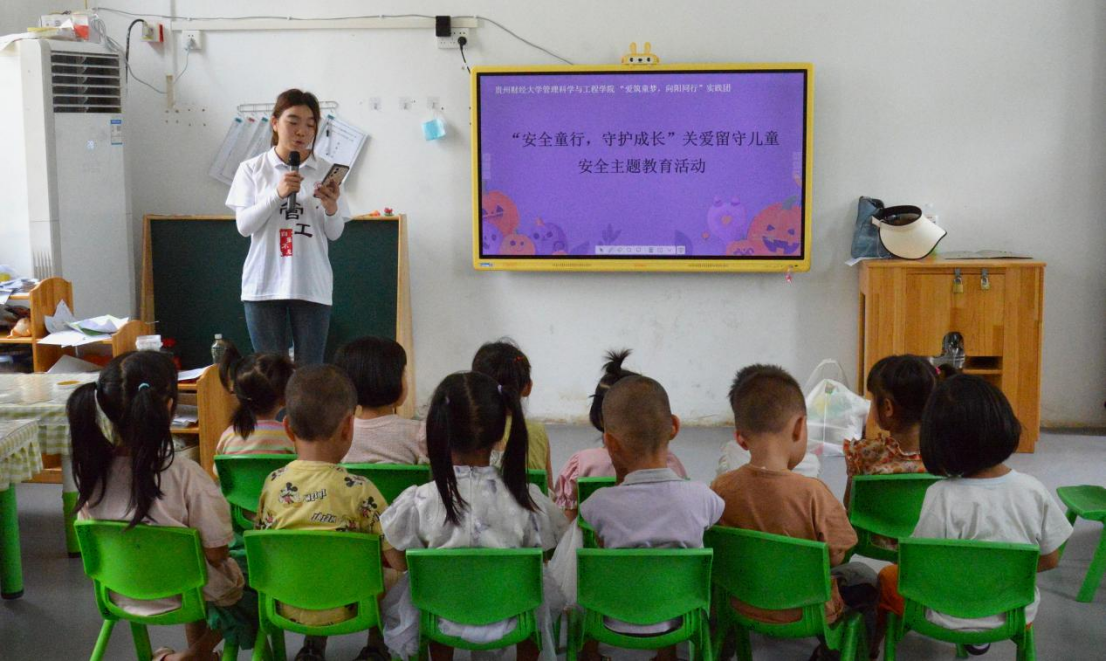 骄阳似火,蝉鸣阵阵,为守护孩子们的暑假美好生活,加强留守儿童安全教育,7月9日,yl23455永利“三下乡”实践队赴台江县良田村幼儿园开展“安全童行,守护成长”主题教育活动。活动通过知识讲解与互动游戏相结合的方式,提升留守儿童的安全防护能力。