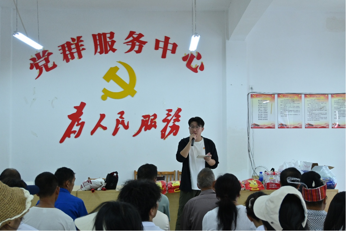 最后,活动现场的环保知识宣讲将气氛推向高潮。邬可锦同学围绕三个重点向村民们开展宣讲:第一、垃圾分类实操:详细讲解农村常见垃圾的分类标准和处理方法;第二、资源节约技巧:介绍家庭节水节电、农业滴灌等实用技术;第三、生态保护知识:普及外来物种防控、“两清两改两治理”等环保政策。宣讲采用“案例+互动”的形式,通过展示福寿螺危害等生动事例,让村民直观认识环保的重要性。现场问答环节气氛热烈,村民纷纷分享自家的环保做法。