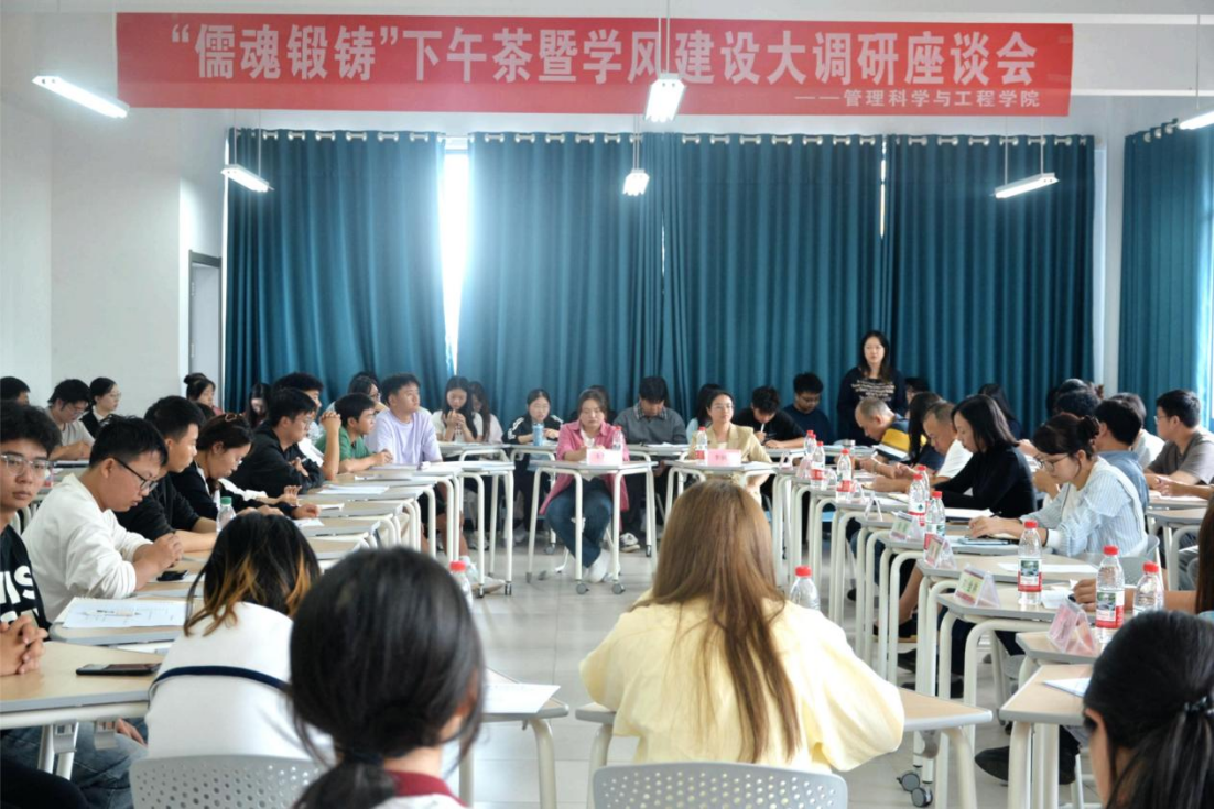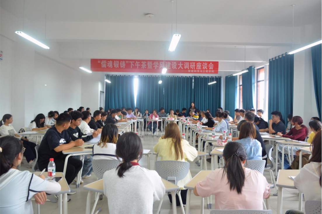 为精准把脉学风建设现状、凝聚育人合力,10月13日中午,yl23455永利“儒魂锻铸”下午茶暨“聚焦学风现状,共探建设路径”学风建设调研座谈会在文溯楼4-1教室顺利举行。本次座谈会由公司党委副书记傅璟主持,特邀公司党委书记胡张林、党委副书记张颖、副经理梁龙、刘金林,各专业系主任及各科室老师、辅导员出席,与各班级班委及普通员工代表共同交流。