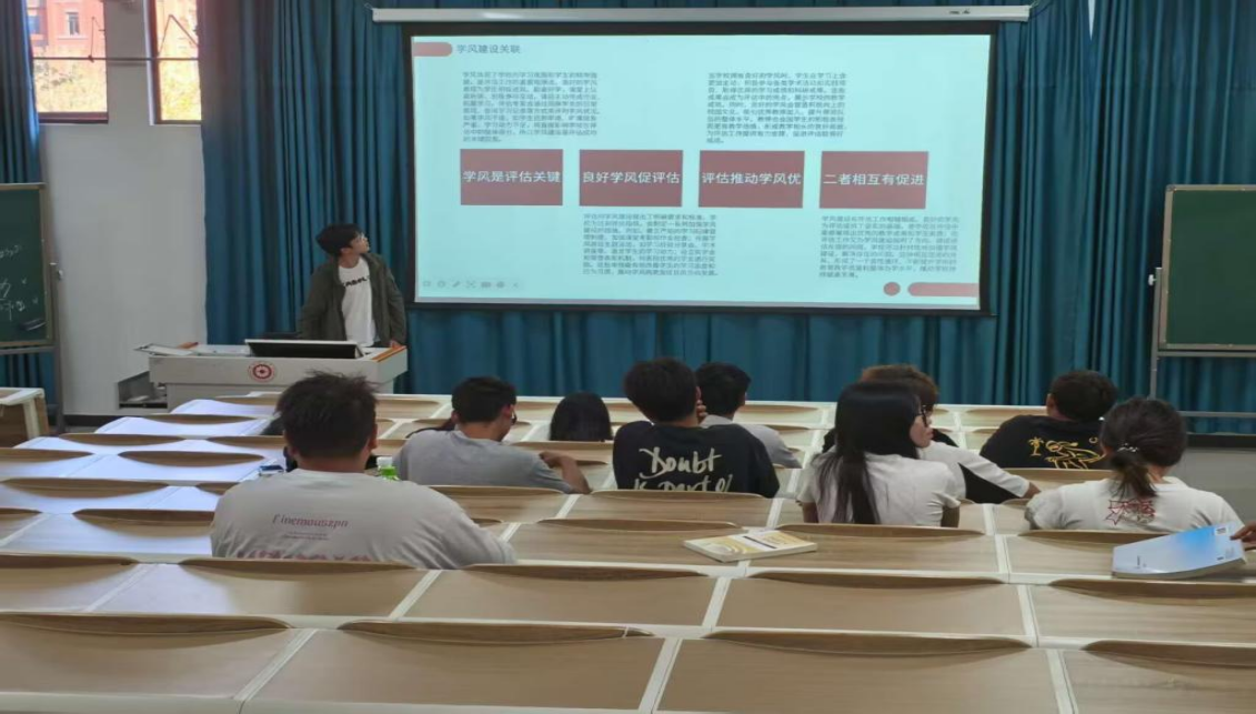 24级自然地理与资源环境班在9月22日以“为什么迎评、我们怎么做”为核心开展活动。先通过个人赛形式开展迎评知识竞赛,题目覆盖评估核心内容、员工参与方式、学风建设要求等模块,竞赛后针对易错题讲解巩固;随后进入“职责义务大讨论”环节,团员围绕“上课不迟到”“配合教学反馈”“成立学风监督小组”等内容交流;最后由团支书董玉玲同学发起行动倡议,明确团员需做迎评“宣传员”、学风“践行者”、评估“参与者”。