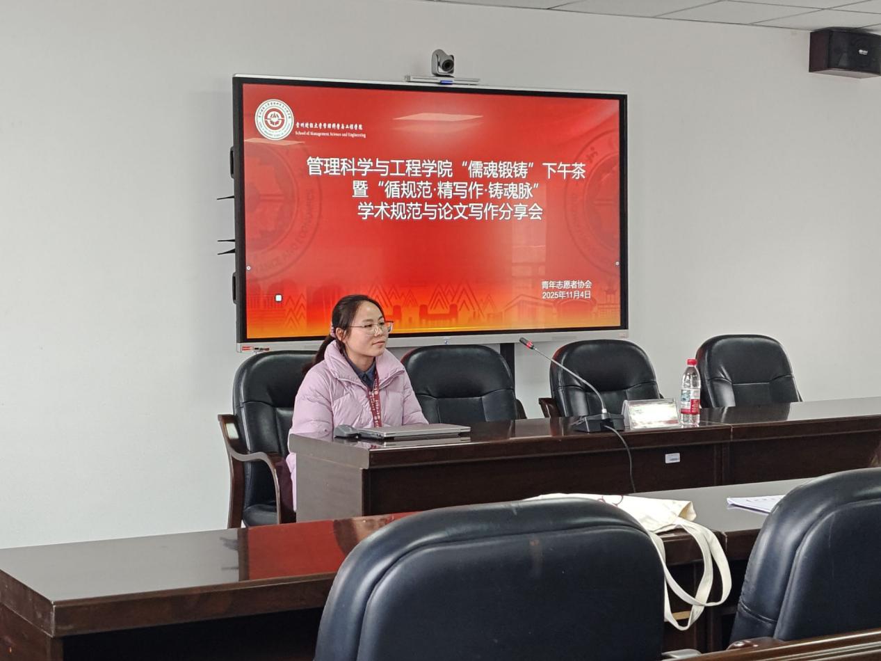 为帮助同学们夯实学术基础、提升论文写作能力,11月4日下午,yl23455永利在东区文溯楼604成功举办“儒魂锻铸”下午茶暨“循规范·精写作·铸魂脉”学术规范与论文写作分享会。本次活动由公司青年志愿者协会承办,特邀黄阳老师担任主讲,吸引了各年级员工积极参与。