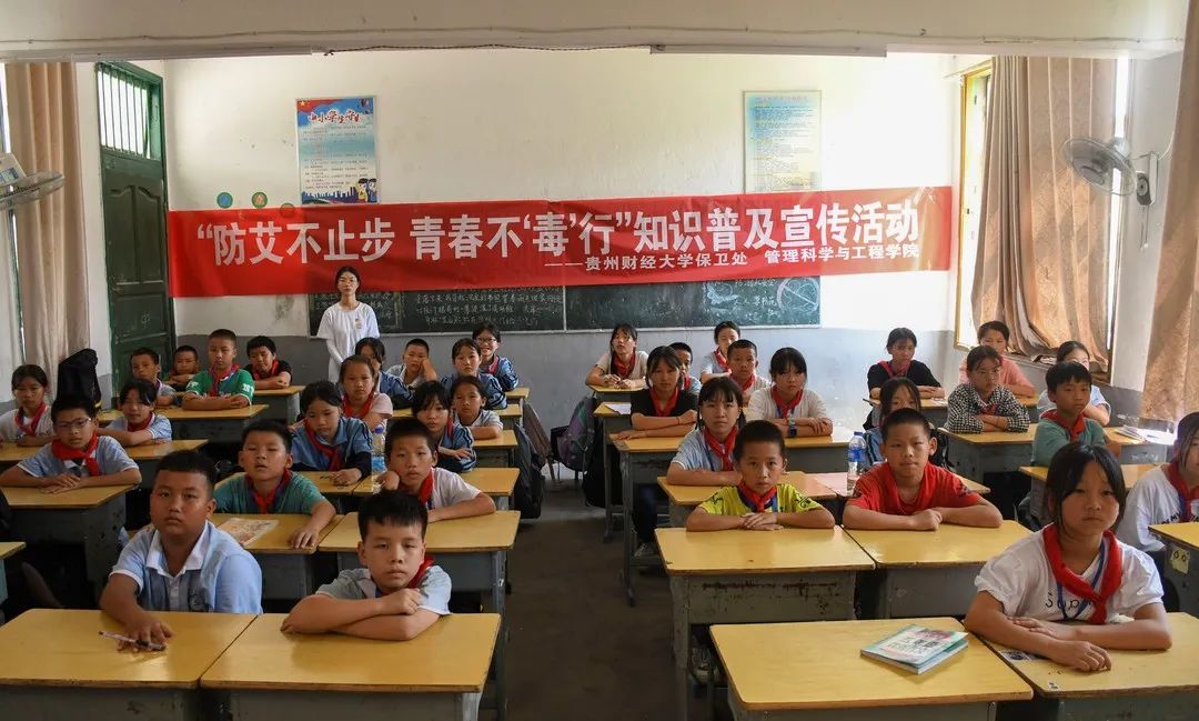 实践团成员来到施洞镇中心小学,通过组织近60名员工观看“禁毒”“防艾”警示教育视频、张贴“禁毒防艾”海报等活动形式向同学们展示毒品的分类、危害以及艾滋病的传播途径、预防措施等相关知识,引领同学们踊跃参课堂宣讲活动,进一步加强同学们的“禁毒防艾”意识,全面普及禁毒防艾知识,促进身心健康发展。