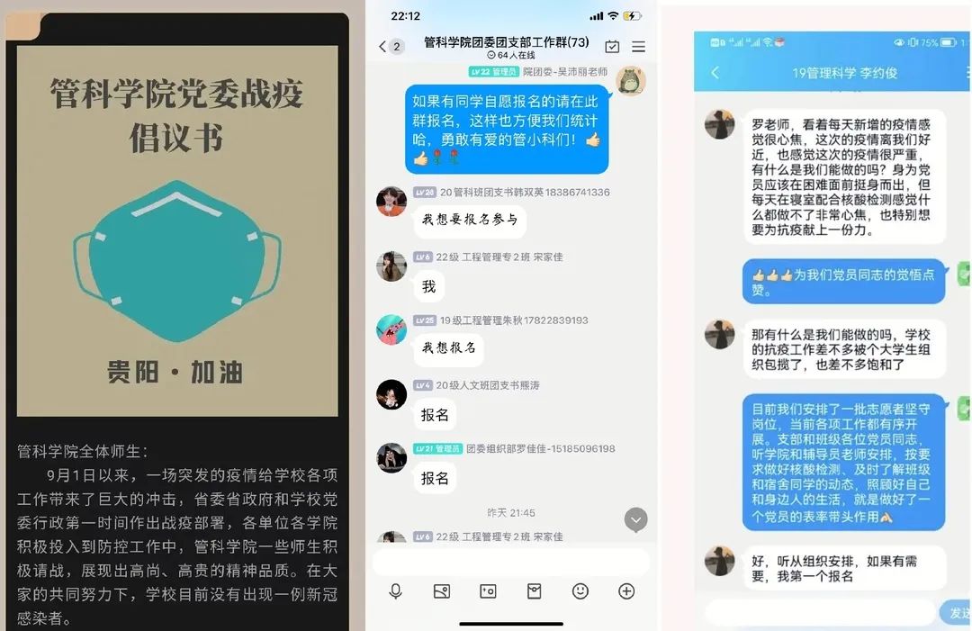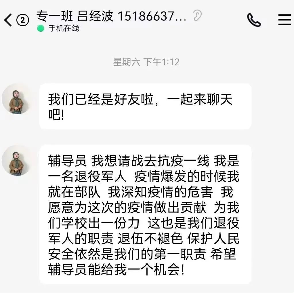 除了他们,还涌现了一批有志青年积极请战。公司20级专升本吕经波、廖鑫同学,作为曾经的退伍士兵、现在的一名贵财管科新生,向公司公司请战抗疫。