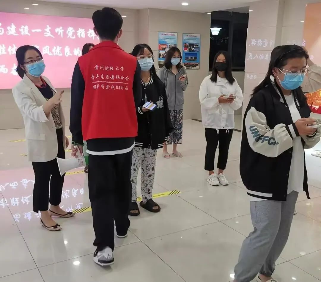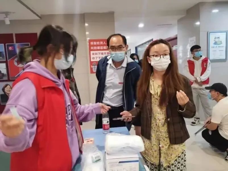 志愿者王玲玲:我主要组织好点位上的志愿者工作分工,引导同学扫健康码、登记宿舍信息、扫码提交核酸检测信息、维持秩序等服务。作为一名预备党员,作为当代在校老员工,我们的身上有着无法丢弃的责任与使命。每次做核酸,一站就是四五个小时,反复地粘贴撕扯条形码,面对成百上千的员工,反复对大家告知注意事项,大家嗓音嘶哑依旧在坚持,做完核酸后还要反复核对核酸检测人员名单,确保万无一失。当我们身在其中的时候才明白,当我们奉献自己的一份力量的时候,在奉献与劳动中,找到了自己的价值,并且成长起来。