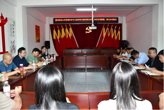 其后,胡张林一行与施洞镇党政主要负责人、旧州村两委主要负责人在旧州村村委会议室召开了座谈交流会。会上,胡张林对施洞镇党委、政府对梁龙副经理驻村期间的工作支持和帮助表示感谢,并表示今后将以党建引领乡村振兴为契机、整合专业力量、丰富合作形式,继续全力支持旧州村的发展。施洞镇党委书记王近南代表镇党委班子对贵财师生特别是驻村的帮扶队员表示感谢;表示必不辜负国家政策的支持和贵财师生的付出;他对旧州的发展表示期待,认为旧州在贵财驻村干部的帮助下,管工公司、管工公司农村发展管理系教工党支部的帮助下,在一村一产的建设方面,一定能借助优势更好地发展;最后,王近南希望公司能发挥智力优势,在旧州农产品销售方面出谋划策、对直播带货一村一队的建设提供指导、开展技能培训等,也欢迎公司师生各类项目落户旧州、双方开展更深入的实践实训合作。座谈会上,yl23455永利农村发展管理系教工党支部和旧州村党支部还就支部结对共建进行了深入交流。此行,管理科学与工程公司党委还捐赠给旧州村委2000余元的物资。