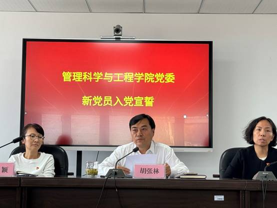 入党宣誓后,胡张林为新党员佩戴了党员党徽,颁发了《中国共产党章程》。胡张林表示,我们隆重举行新党员入党宣誓,就是要用仪式感提醒每一名党员,入党宣誓是非常庄重、严肃的事情,象征着党员政治生命开始,每一名党员都要像爱惜生命一样,珍惜自己的政治生命;他对全体党员逐句阐释了入党誓词的深刻含义,要求同学们深入学习党的历史,不断提升理论水平、学业水平,用实际行动践行诺言,为党旗增辉;他要求同志们时刻坚守共产党员的政治品格,在学习、工作、生活等方面都发挥先锋模范作用,要讲政治、要积极作为,要严守纪律,做一名忠诚干净担当的共产党员;