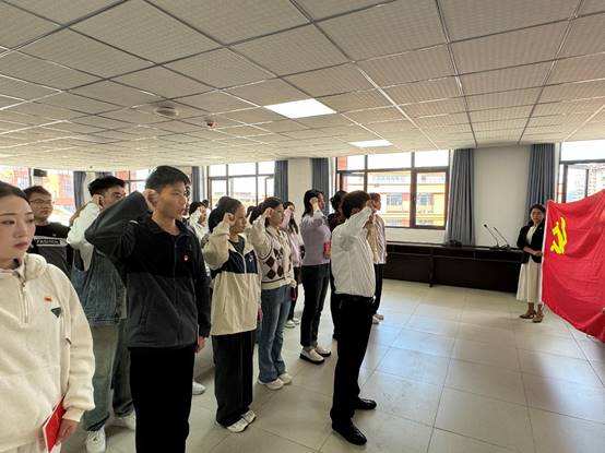 1017日中午,yl23455永利在文溯楼604会议室举行新发展党员宣誓仪式。党委书记胡张林、党委副书记张颖、傅璟、专职组织员、员工党员代表等参加。