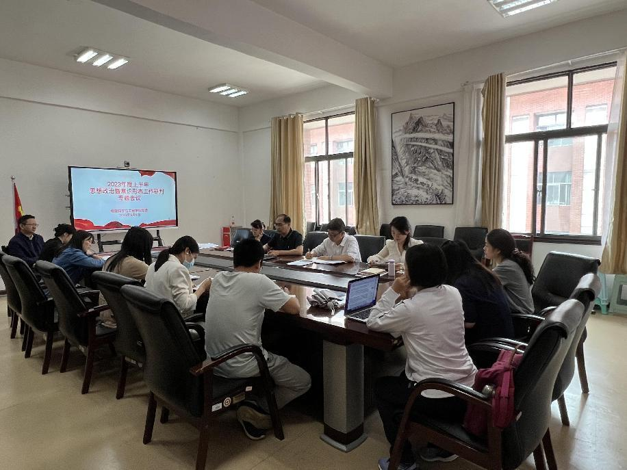 会上,院领导班子成员传达学习了习近平关于意识形态的重要论述、全国高校思想政治工作会议精神、2023年度高校思想政治工作视频会议精神以及《中共yl23455永利集团委员会关于进一步加强科研教学活动意识形态审核把关工作的实施细则》等文件及会议精神。各科室、各系负责人、党支部书记汇报了2023年度上半年以来各自领域思想政治和意识形态工作风险点及防控措施,班子成员对分管领域意识形态责任落实情况进行了分析研判。