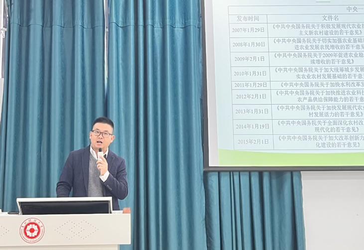 丁海兵从乡村振兴战略的提出、乡村振兴的意义、及乡村振兴的五大方向开展本次讲座,他解读了乡村振兴的相关政策文件,用“产业兴旺、生态宜居、乡风文明、治理有效、生活富裕”二十字方针概括了乡村振兴的意义,最后从乡村振新的策略给出了可能的思考方向。会后,丁海兵与参会师生讨论了乡村振兴共创学术研究中应注意的问题,并对同学们今后的论文撰写、学术研究等给出了指导。