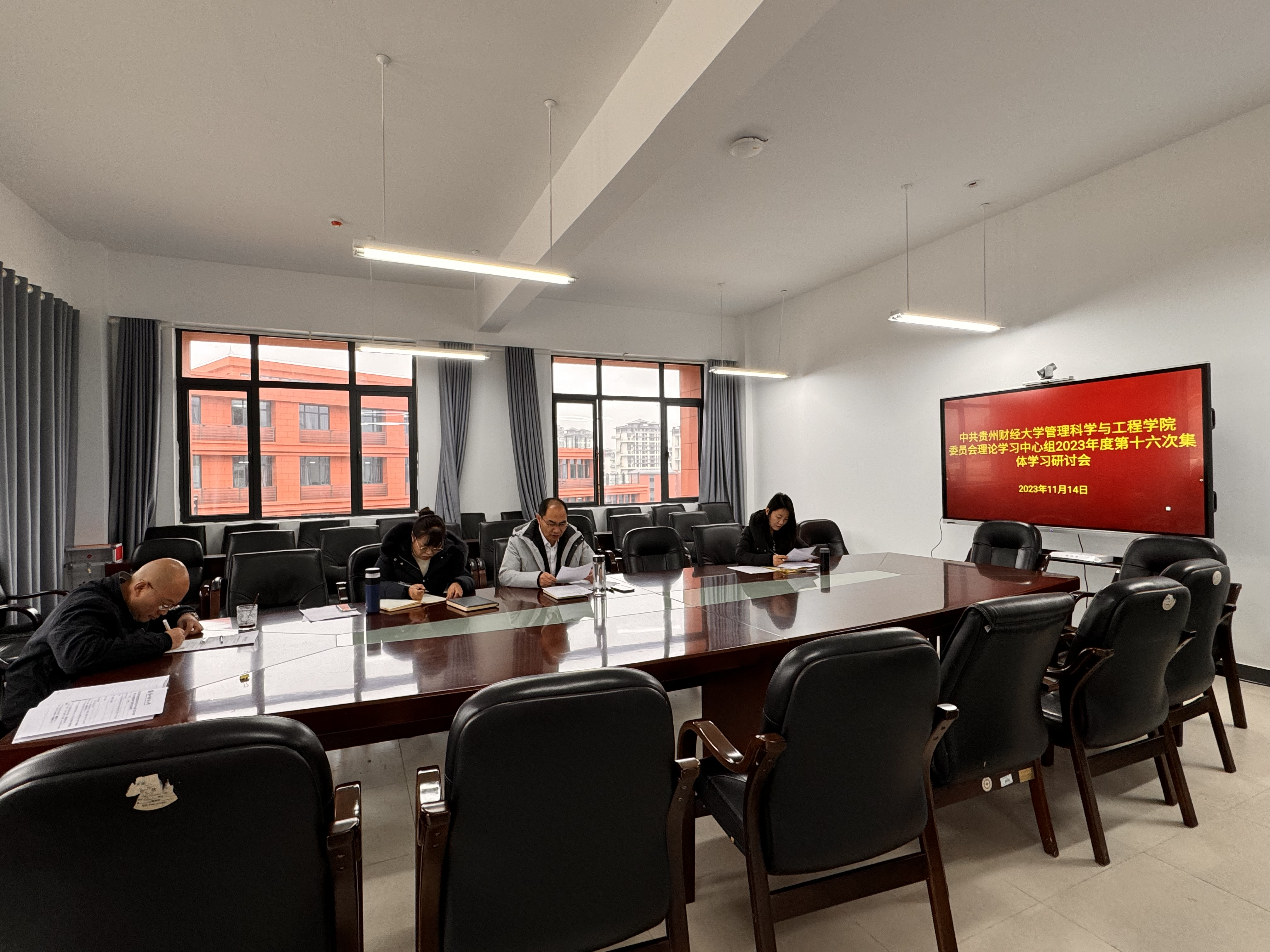 11月14日,管理科学与工程公司党委理论学习中心组2023年度第十六次集体学习研讨会在文溯楼509楼会议室召开。参加会议的有公司党委书记邵新顺,党委副书记高艳妮,党委委员、副经理魏媛,经理郭长睿、贵州煤炭经济与管理研究院副经理李恩东列席会议,会议由邵新顺主持。