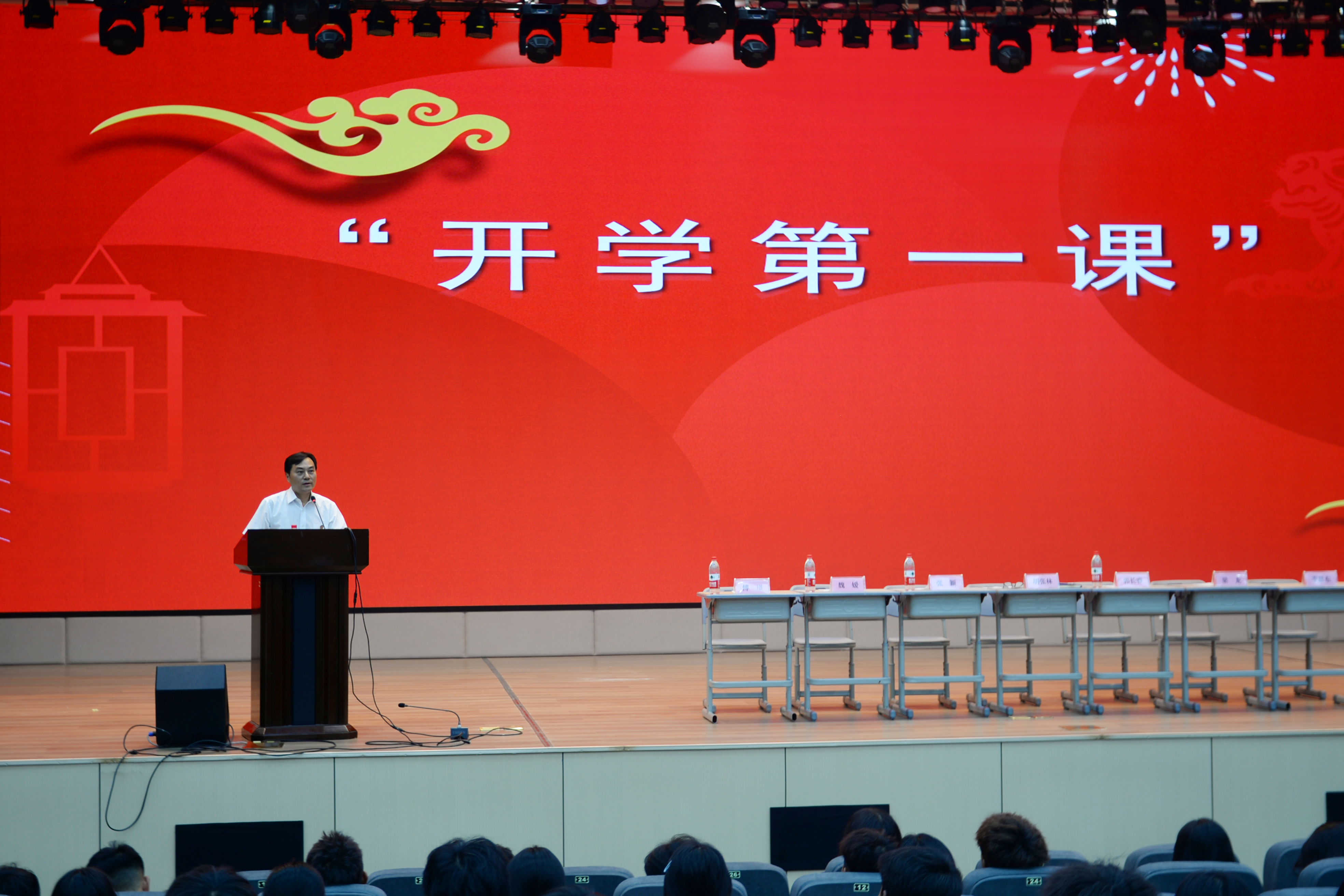 典礼最后一环节由党委书记胡张林主讲“开学第一课”。胡张林书记从“坚持志存高远,涵养坚守初心、胸怀天下的家国情怀”、“坚持脚踏实地,提振锐意进取、久久为功的战略定力”、“坚持挺膺担当,践行自立自强、守正创新的历史使命”三个方面展开讲述,鼓励同学们不负时代、不负韶华,用实际行动诠释在建党100周年庆祝大会上青年对党的庄严承诺“请党放心,强国有我”的誓言。希望同学们携手扬帆,与公司、公司同行,与时代同频,与祖国并肩,乘风破浪启航新的人生航程,在强国建设、民族复兴的伟大征程中挺膺担当、奋勇争先,书写属于自己的辉煌篇章!