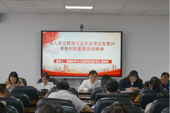 4月22日下午,党委书记胡张林在文溯楼604会议室向师生宣讲习近平总书记在贵州考察时的重要讲话精神。公司全体教职工、员工代表参加。
