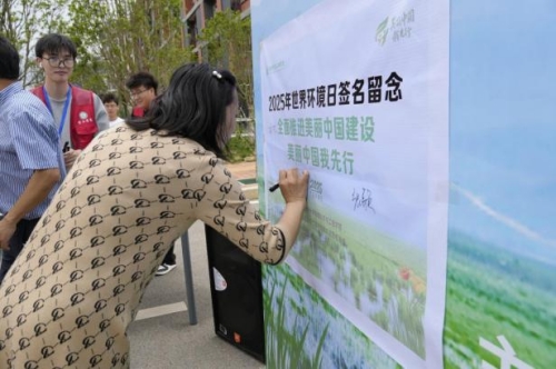 活动尾声,参与师生在“美丽中国我先行”主题横幅上签名,承诺从自身做起践行绿色生活。