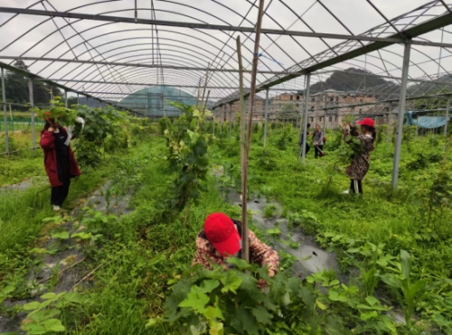 6月1日,烈日当空,在梁老师的指导下,贵财学子分工推进农事劳作。一部分人继续进行玉米与西瓜套作,量间距、栽瓜苗、铺地膜;另一部分人则投入果树种植,清除杂草、挖树坑、放树苗、填土压实;还有的同学穿梭在葡萄架下,小心翼翼地给葡萄套袋,确保每串果实都被环保纸袋妥帖包裹。田间地头,大家干劲十足,汗水滴落泥土。夕阳西下时,套作田、新栽果树区与缀满“白衣葡萄”的藤蔓,在科技小院里焕发出勃勃生机。这场以土地为课堂的实践,让贵财学子将专业知识融入田间地头,用青春与汗水在乡村振兴的画卷上,书写下属于自己的生动注脚。