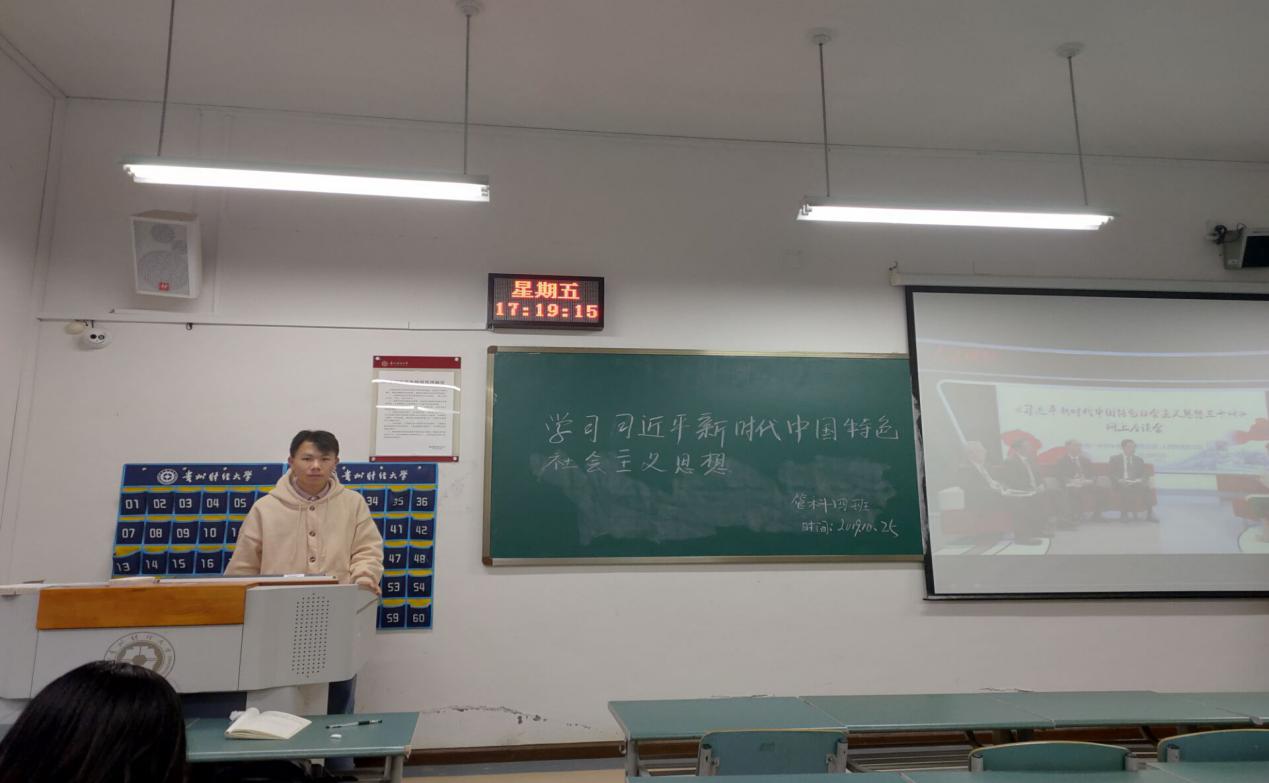 为了学习并贯彻习近平新时代中国特色社会主义思想,弘扬社会主义核心价值观,了解祖国发展思想的行动指南。yl23455永利19级四班全体成员于2019年10月25日在博学楼4-5教室开展学习“习近平新时代中国特色社会主义思想”活动,此次活动由周道主持。