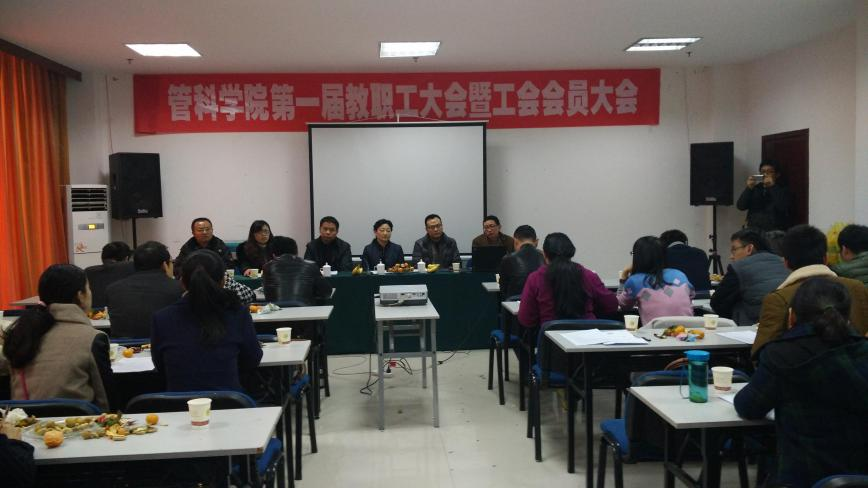 11.2015 年 12 月 25 日,管科公司召开第一届教职工大会暨工会会员大会,通过经理工作报告、财务工作报告、工会工作报告和管科公司课酬考核分配方案(试行),审定了顶层设计中的院旗、院训、院徽及院徽解读。